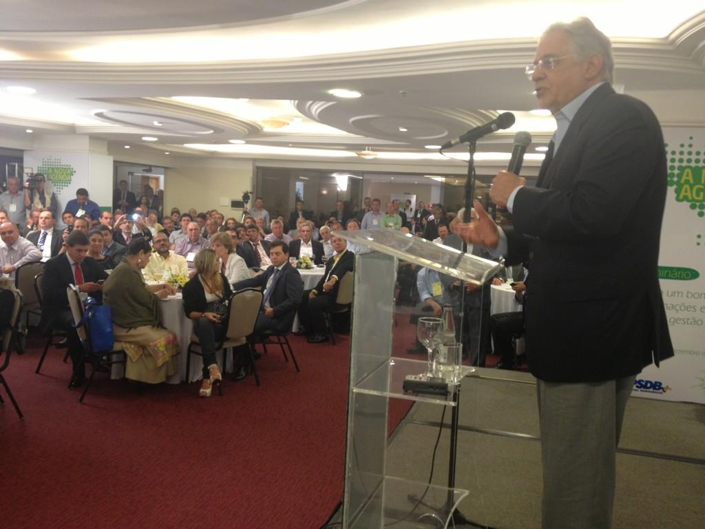 "Esse jovem eu até já me esqueci dele. Tenho 81 anos e tenho memória. Esse senhor deveria respeitar o passado, não o passado dele, e não dizer coisas levianas. Eu, quando assumi o governo, a Polícia Federal era uma bagunça. A escola da Polícia Federal estava fechada. Nós arrumamos tudo e por isso esse senhor precisaria pensar duas vezes antes de dizer o que não sabe. Eu não quero ficar falando, mas durante o meu governo houve senadores algemados. Achei um exagero, mas houve senadores algemados. Houve governadores irritados porque a Polícia Federal descobriu dinheiro guardado", disse Fernando Henrique, sem citar nomes, mas referindo-se à Roseana Sarney, que, em 2002, quando pretendia disputar a Presidência da República, a Polícia Federal encontrou dinheiro não declarado na empresa Lunus Participações, administrada pelo marido, Jorge Murad Júnior.